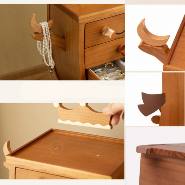 • ตู้เก็บเครื่องประดับไม้ 4 ชั้น ดีไซน์มงกุฎพระจันทร์