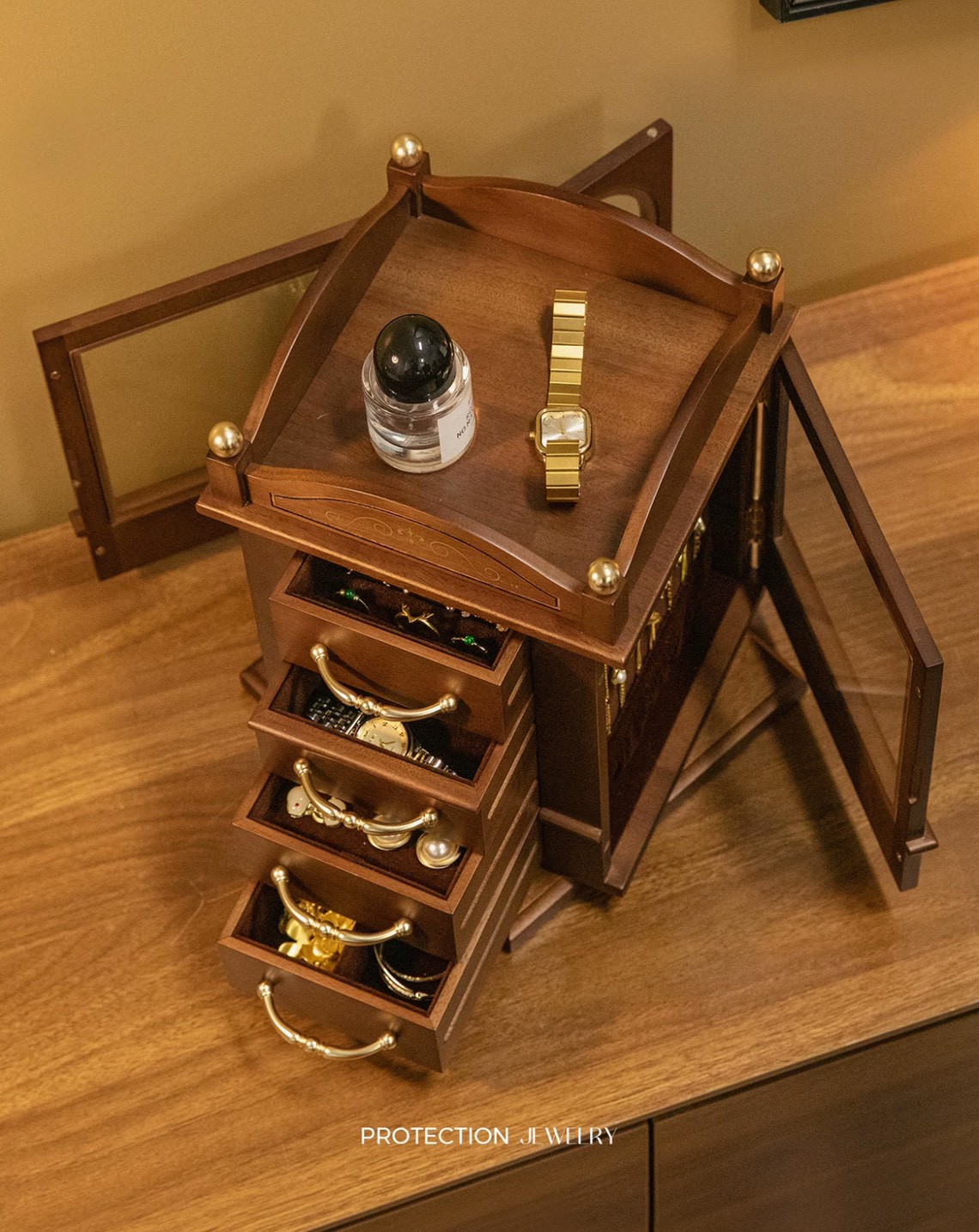 • มีลิ้นชักหลายชั้นสำหรับแยกเก็บเครื่องประดับ